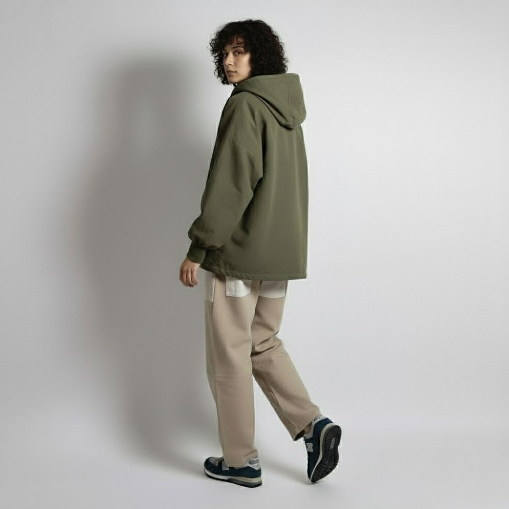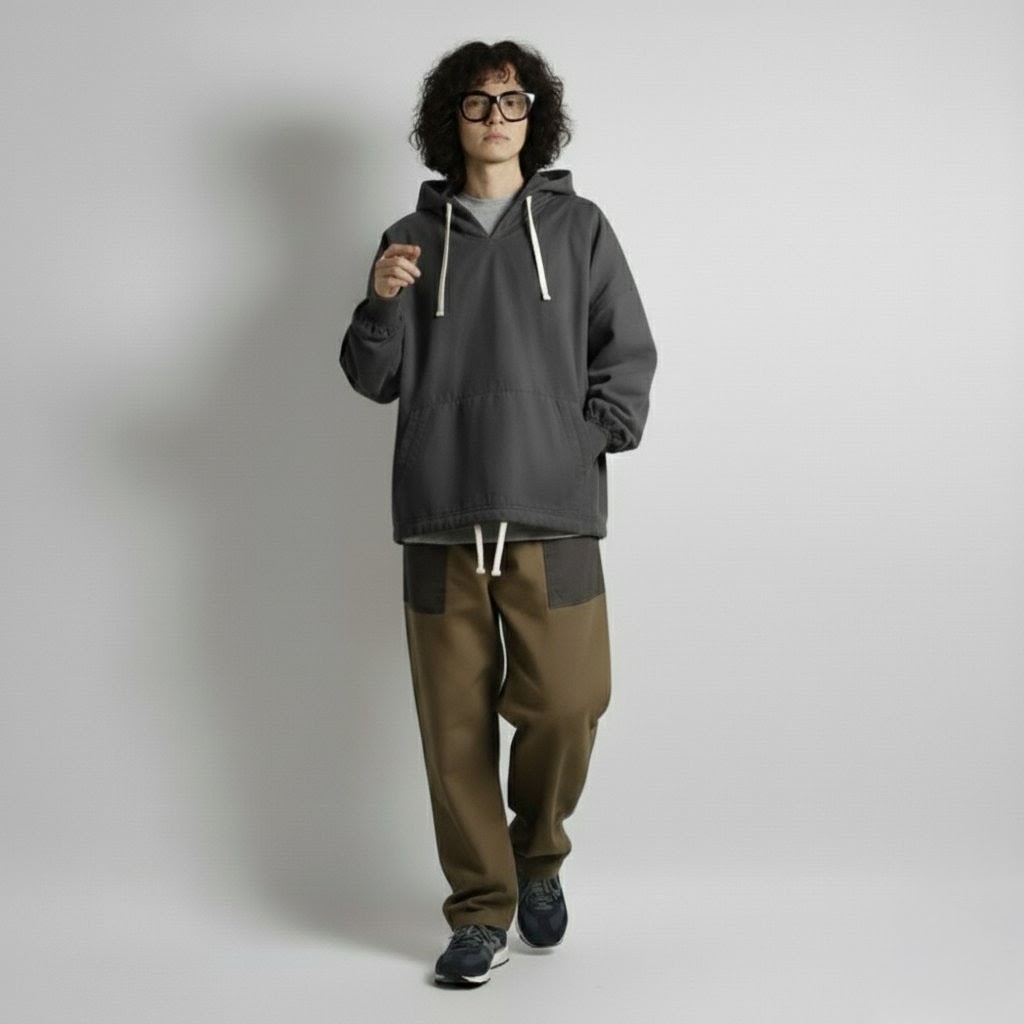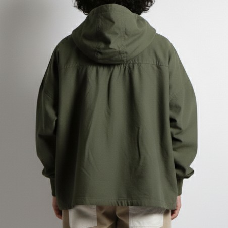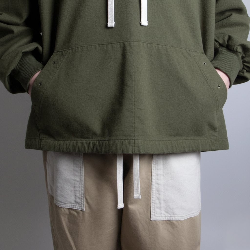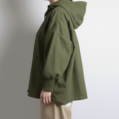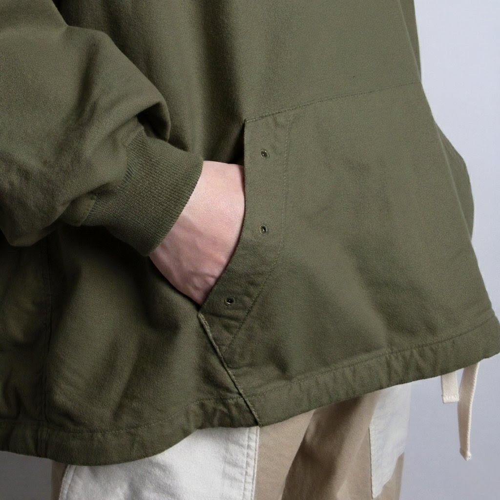 Inspired by old Provençal shepherd smocks, we incorporated "sugatakatachi" (our brand's unique style) by creating a generously sized garment with gathers at the back and combining ribbed cuffs, allowing it to be styled as both outerwear and innerwear.